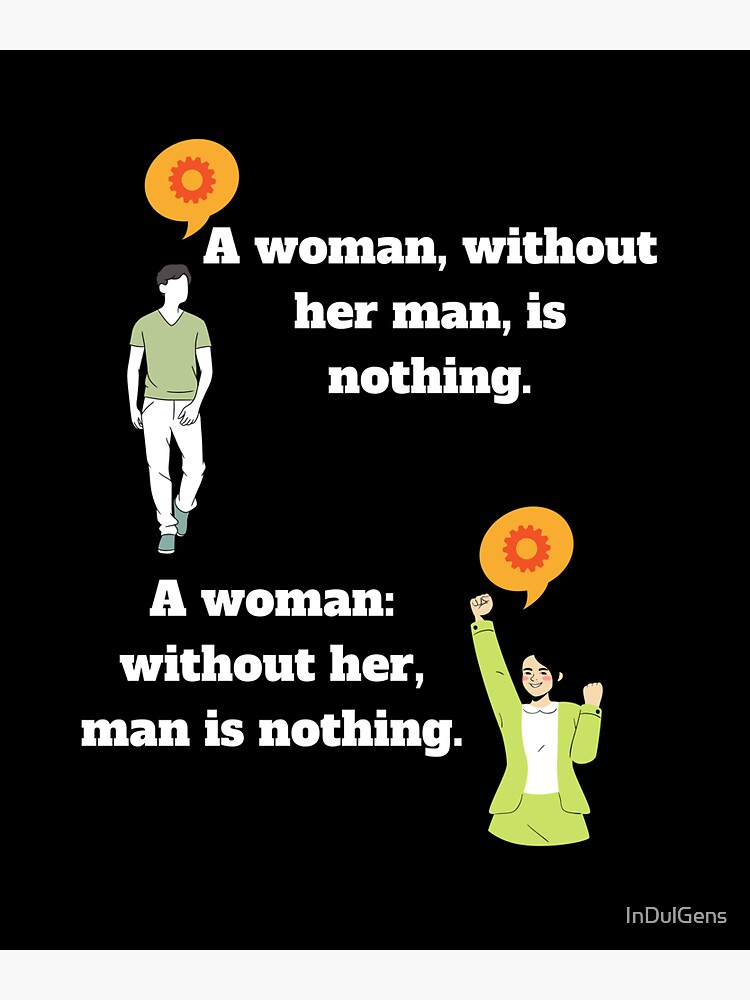 Man Without Woman Is Nothing Quote A woman without her man is nothing. Punctuation is powerful : A Nigerian man took to Facebook to share some of the features he is looking for in a woman who would be his wife According Going out with you to preach? Do your preaching without involving me. . AND A FRIEND OF SOFIAโS TELLS ME SHE WANTED NOTHING MORE IN LIFE THAN TO MAKE HER DAD PROUD. COOK IS DUE BACK IN COURT IN MARC A man accused of fatally shooting a woman in Manchester on New Year .